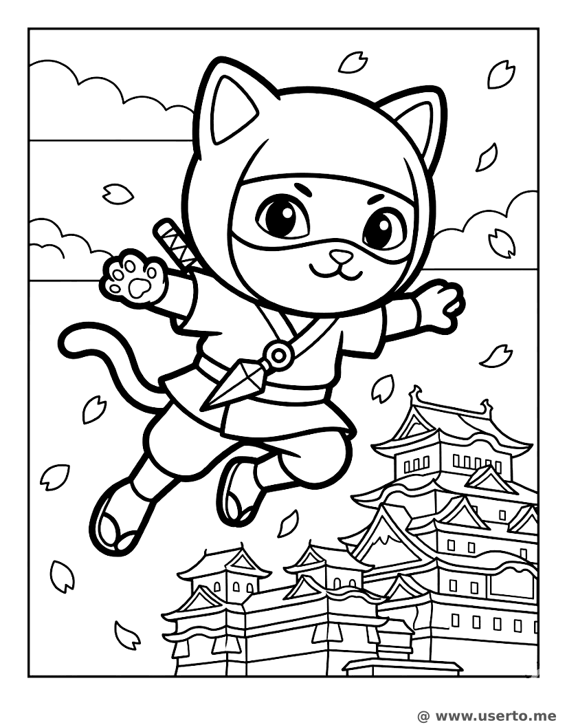 descriptionNinja Kitty’s Castle Leap Coloring Page Description