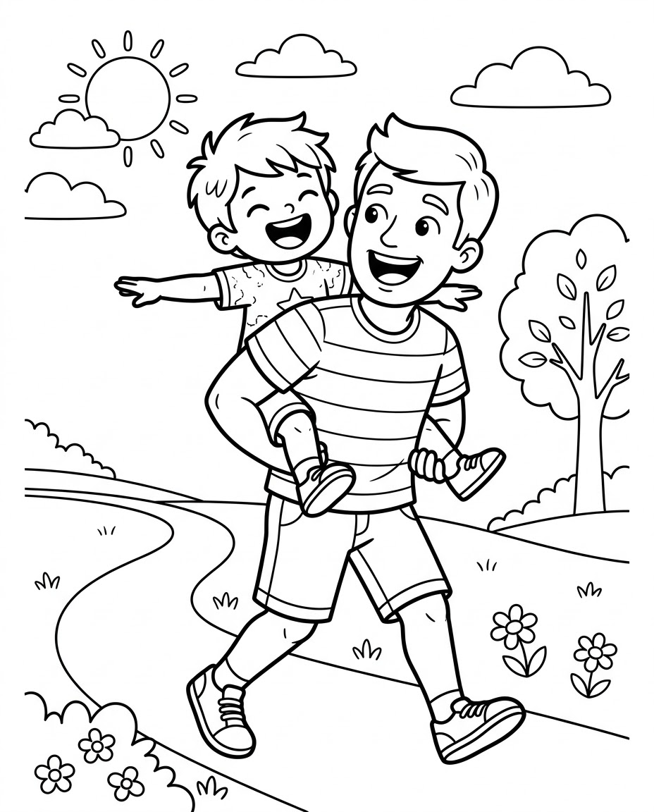 Piggyback Airplane Ride is a popular dad, child, play, excited, family themed page in the People & Family category. Print this free AI-generated coloring sheet to help your child develop fine motor skills and creativity. High-resolution image optimized for A4 paper is available for instant download.