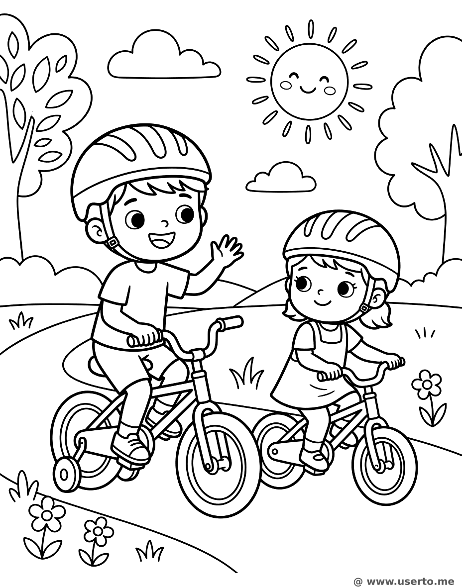 Siblings Riding Bikes - Free AI Coloring Book: To Me