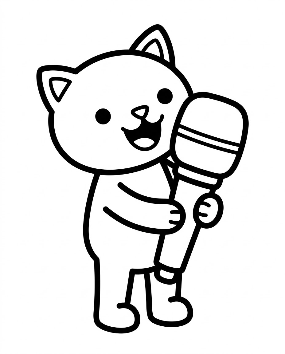 Singing Baby Cat is a popular cat, kpop, singing, microphone, animal themed page in the K-Pop Icons category. Print this free AI-generated coloring sheet to help your child develop fine motor skills and creativity. High-resolution image optimized for A4 paper is available for instant download.