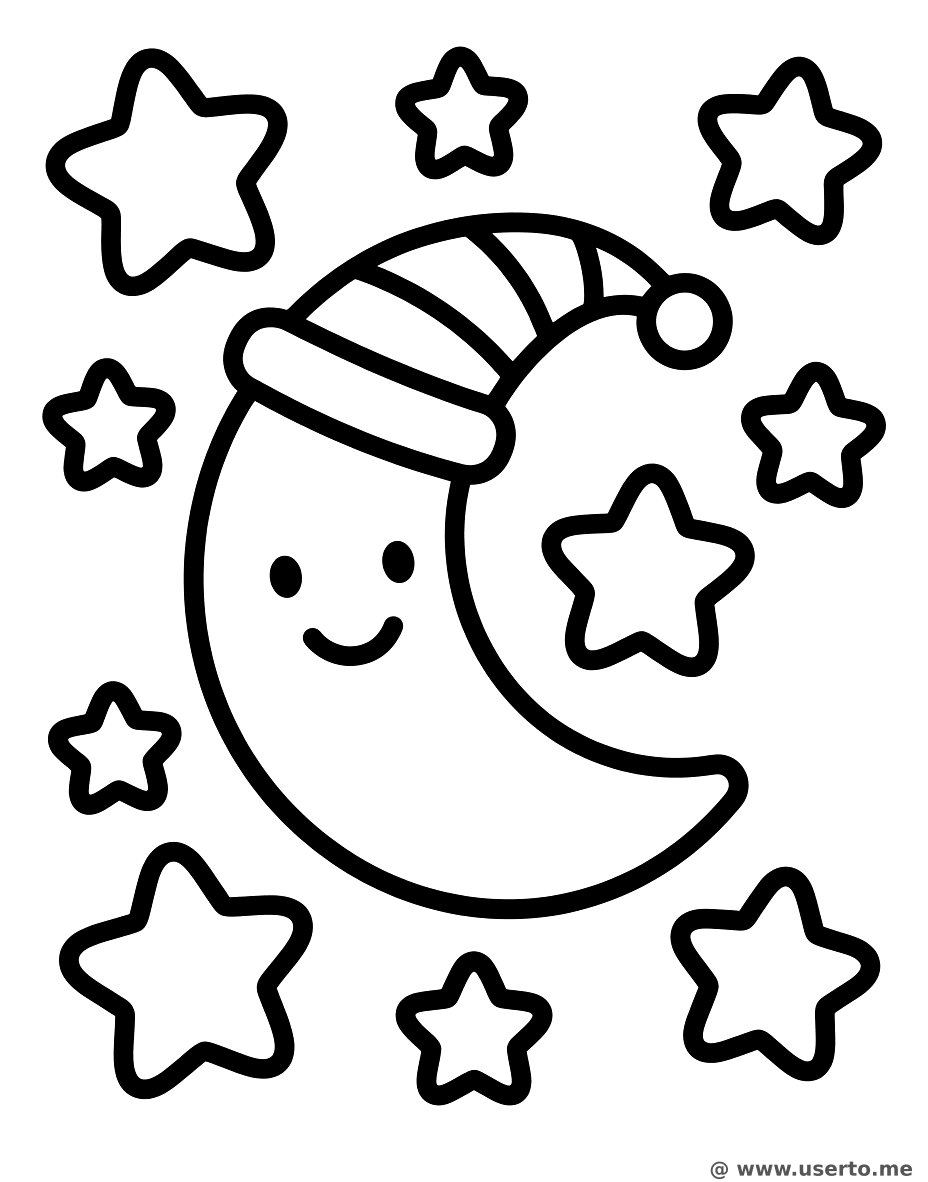 descriptionSleepy Moon and Star Friends Coloring Page Description