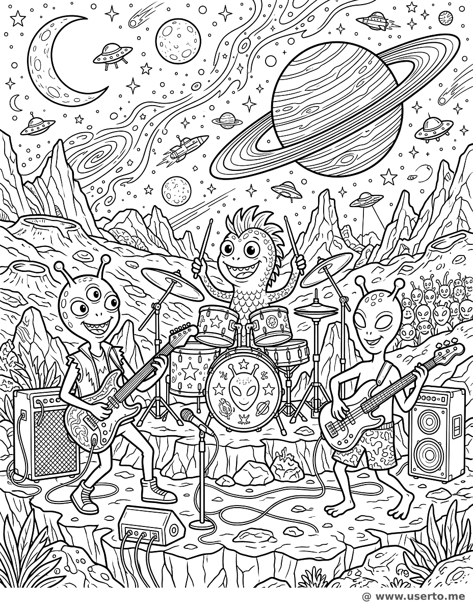 Space Band Concert - Free AI Coloring Book: To Me