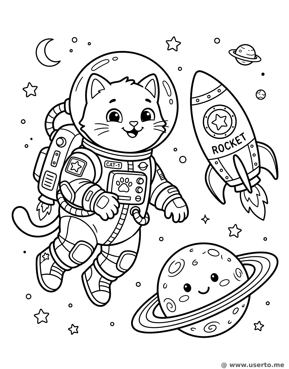 Space Explorer Kitty - Free AI Coloring Book: To Me