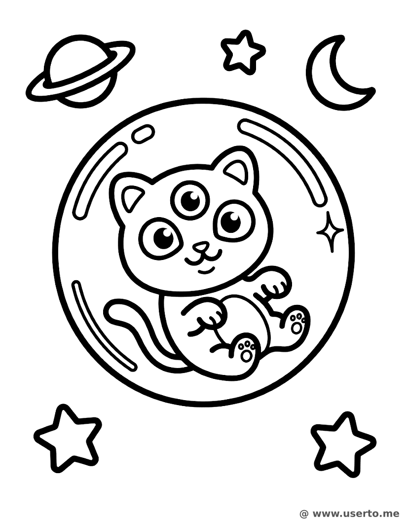 descriptionSpace Kitty's Bubble Ride Coloring Page Description
