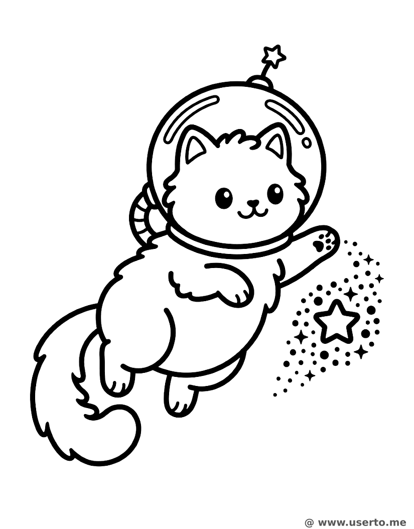descriptionSpace Kitty’s Stardust Ball Coloring Page Description