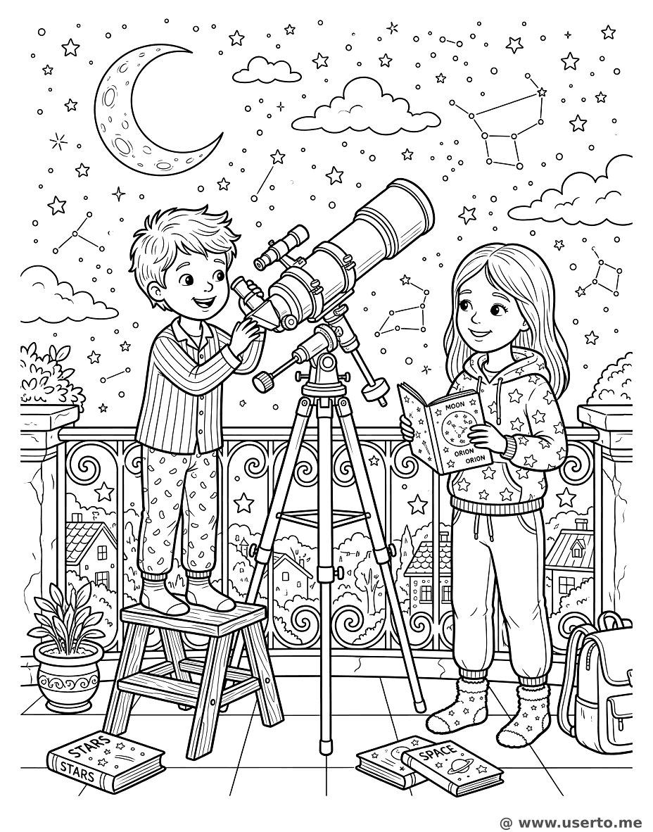 descriptionStargazing Adventure Coloring Page Description