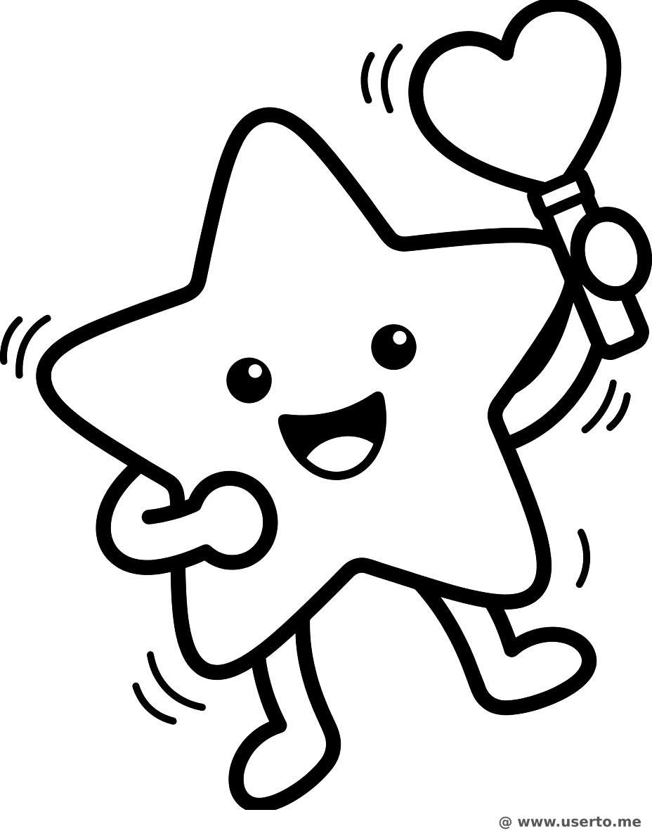 A friendly star dancing and holding a glowing heart-shaped lightstick.