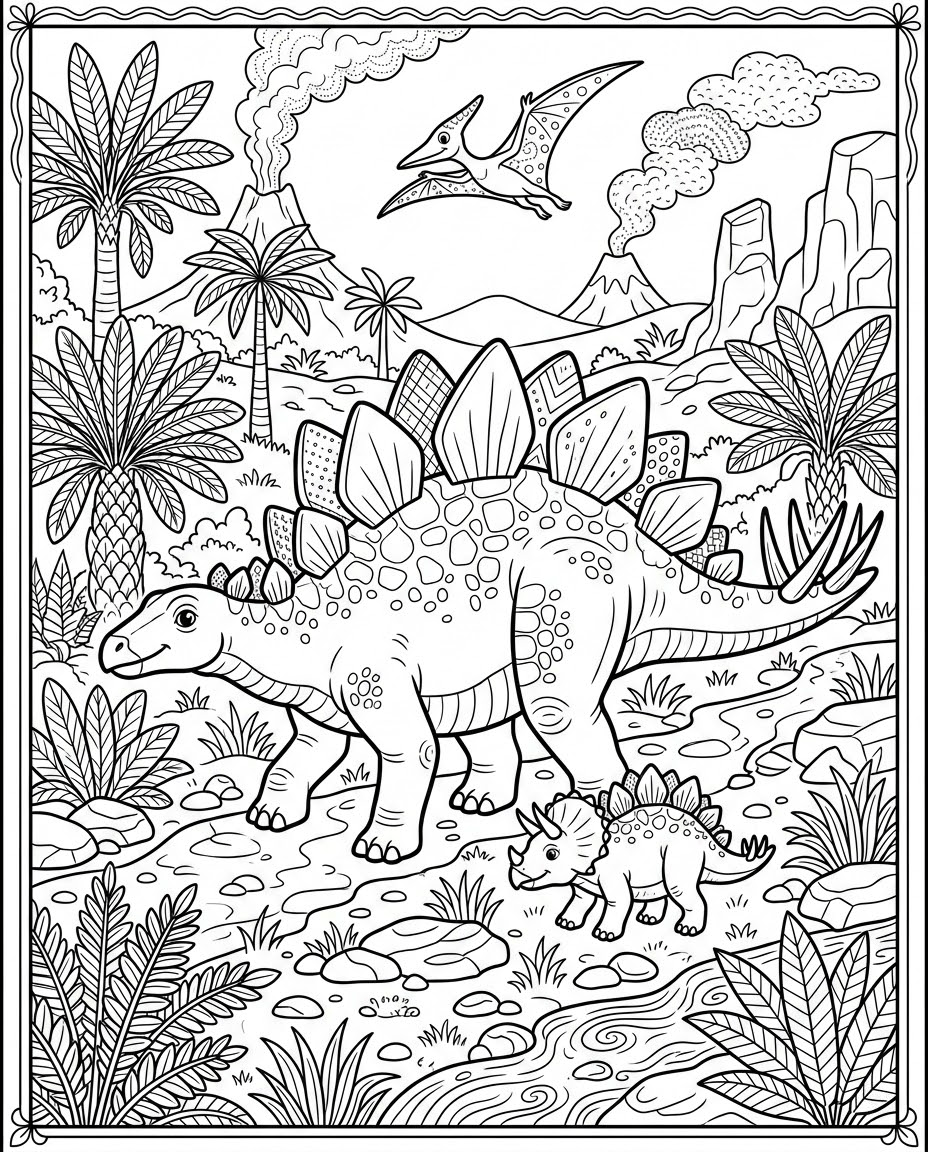 Stegosaurus on a Walk is a popular dinosaur, stegosaurus, nature, walk, herbivore themed page in the Dinosaurs category. Print this free AI-generated coloring sheet to help your child develop fine motor skills and creativity. High-resolution image optimized for A4 paper is available for instant download.