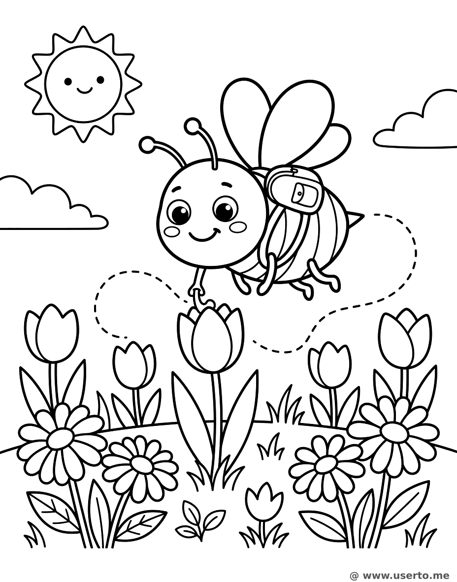 The Busy Garden Bee - Free AI Coloring Book: To Me