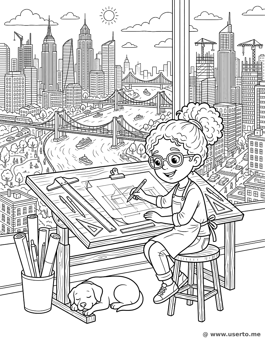 The Master Architect is a popular architect, design, city, engineering, creative themed page in the Jobs & Work category. Print this free AI-generated coloring sheet to help your child develop fine motor skills and creativity. High-resolution image optimized for A4 paper is available for instant download.