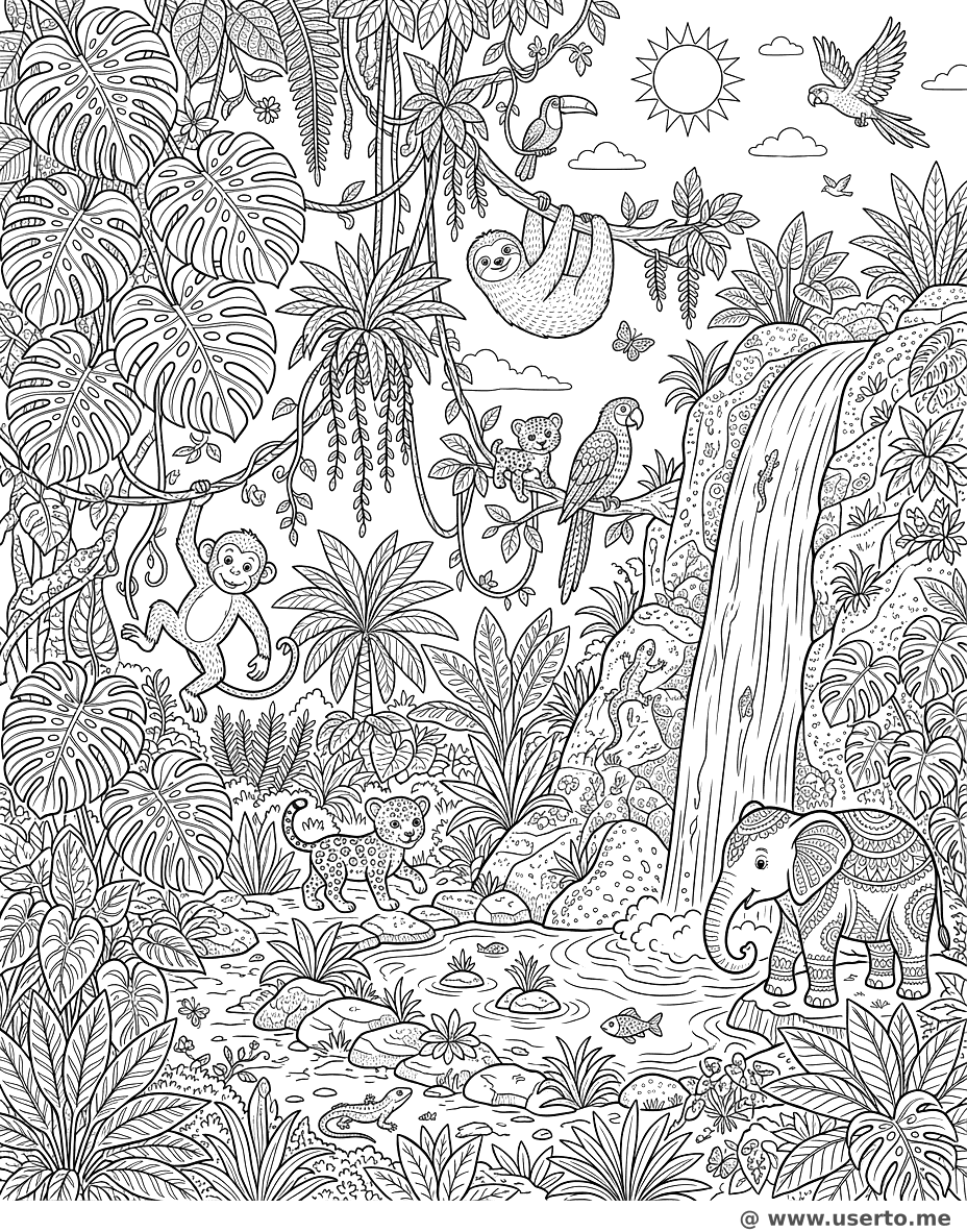 The Secret Jungle Waterfall - Free AI Coloring Book: To Me