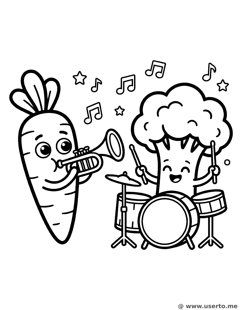 descriptionThe Veggie Marching Band Coloring Page Description