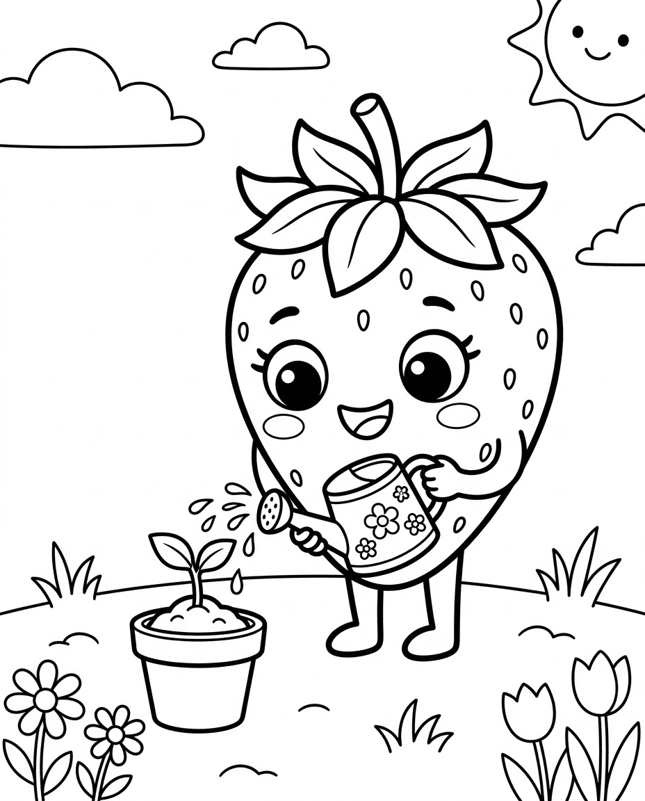 Watering Strawberry Fairy - Free AI Coloring Book: To Me