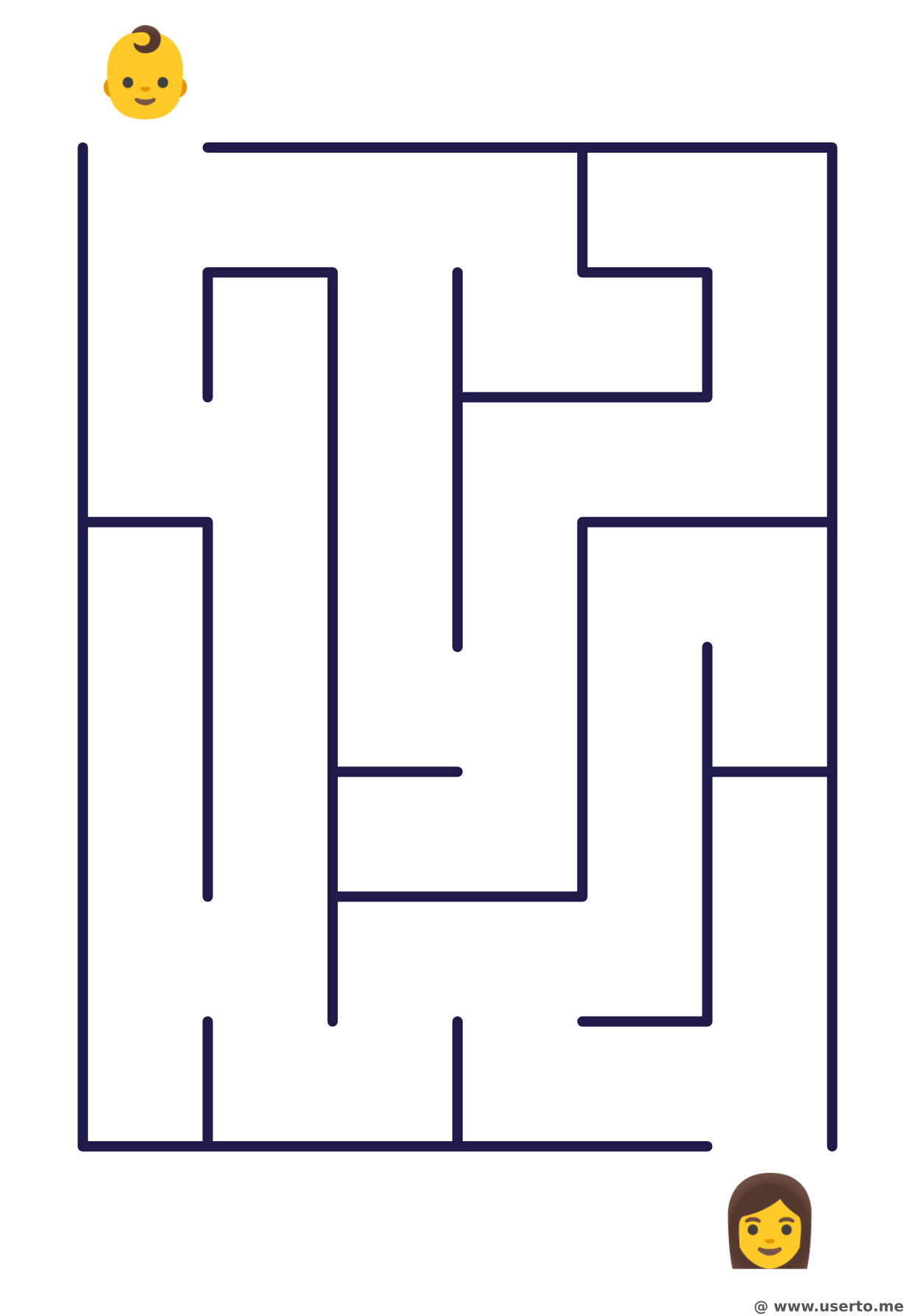 Help the crawling baby find a clear and simple path to reach Mommy's warm embrace.