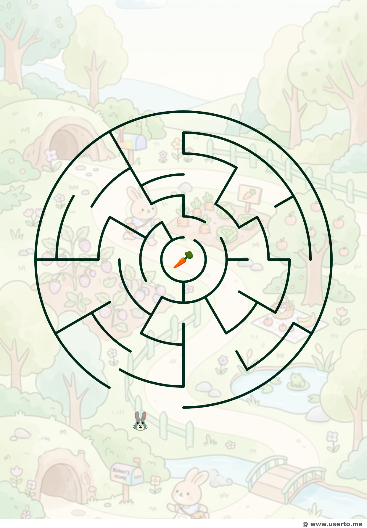 A simple, curvy path for a little bunny to find a delicious orange carrot.