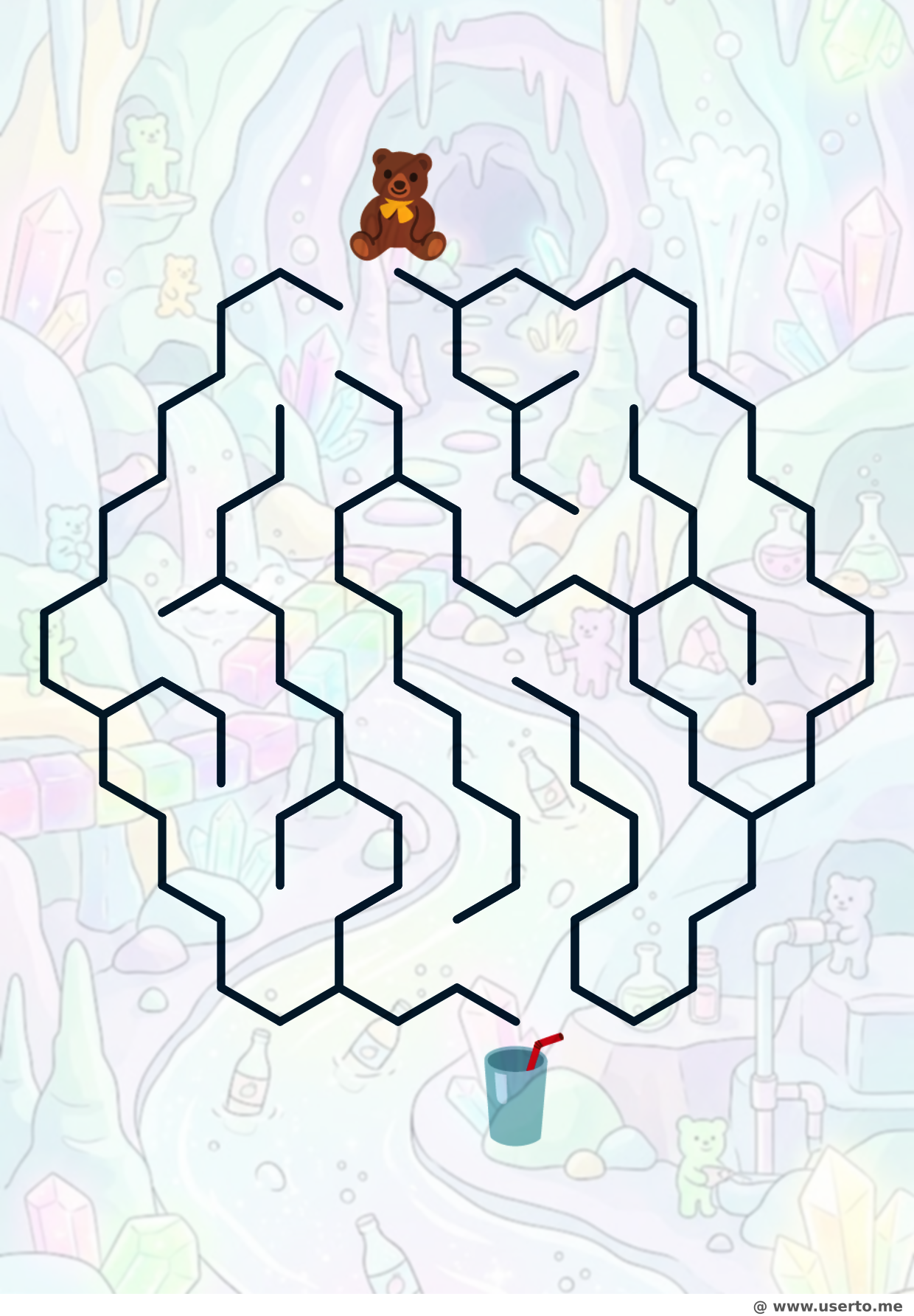 Get ready for a fun challenge with the The Gummy Bear's Neon Soda Cave maze puzzle, a highly popular printable activity in our collection. Featuring exciting gummy bear, soda, bubbles, candy, preschooler, hexagonal designs, this free, high-quality maze is perfectly formatted for easy A4 printing at home or school. Tracing the path from start to finish requires focus and logic, making it an excellent brain-boosting game that improves children's spatial awareness, visual tracking, and problem-solving abilities. Beyond just logic, mazes are fantastic tools for developing fine motor control. Download this engaging puzzle today to offer your kids a rewarding screen-free experience.