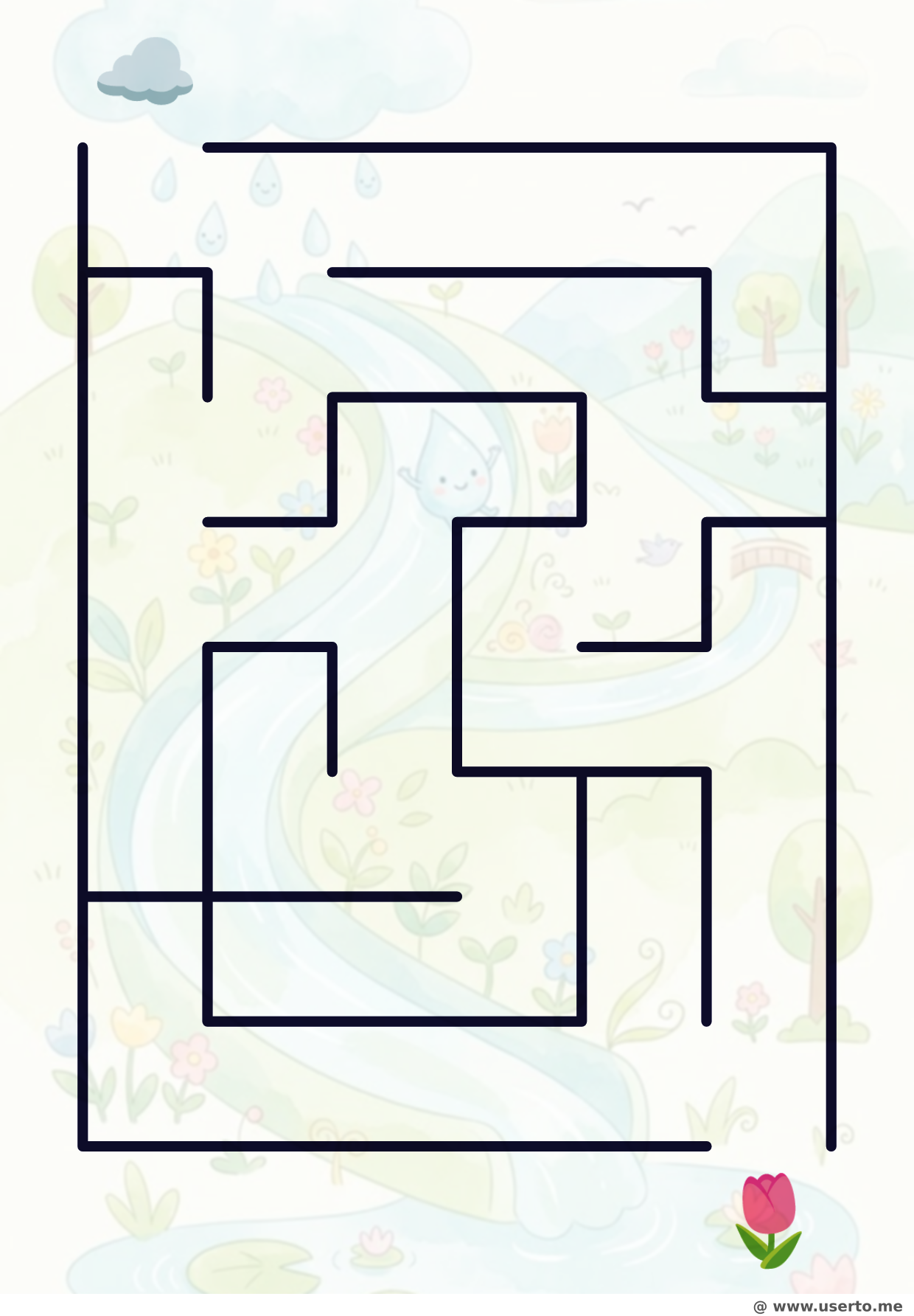 Get ready for a fun challenge with the The Raindrop's Spring Slide maze puzzle, a highly popular printable activity in our collection. Featuring exciting spring, rain, flower, nature, simple designs, this free, high-quality maze is perfectly formatted for easy A4 printing at home or school. Tracing the path from start to finish requires focus and logic, making it an excellent brain-boosting game that improves children's spatial awareness, visual tracking, and problem-solving abilities. Beyond just logic, mazes are fantastic tools for developing fine motor control. Download this engaging puzzle today to offer your kids a rewarding screen-free experience.