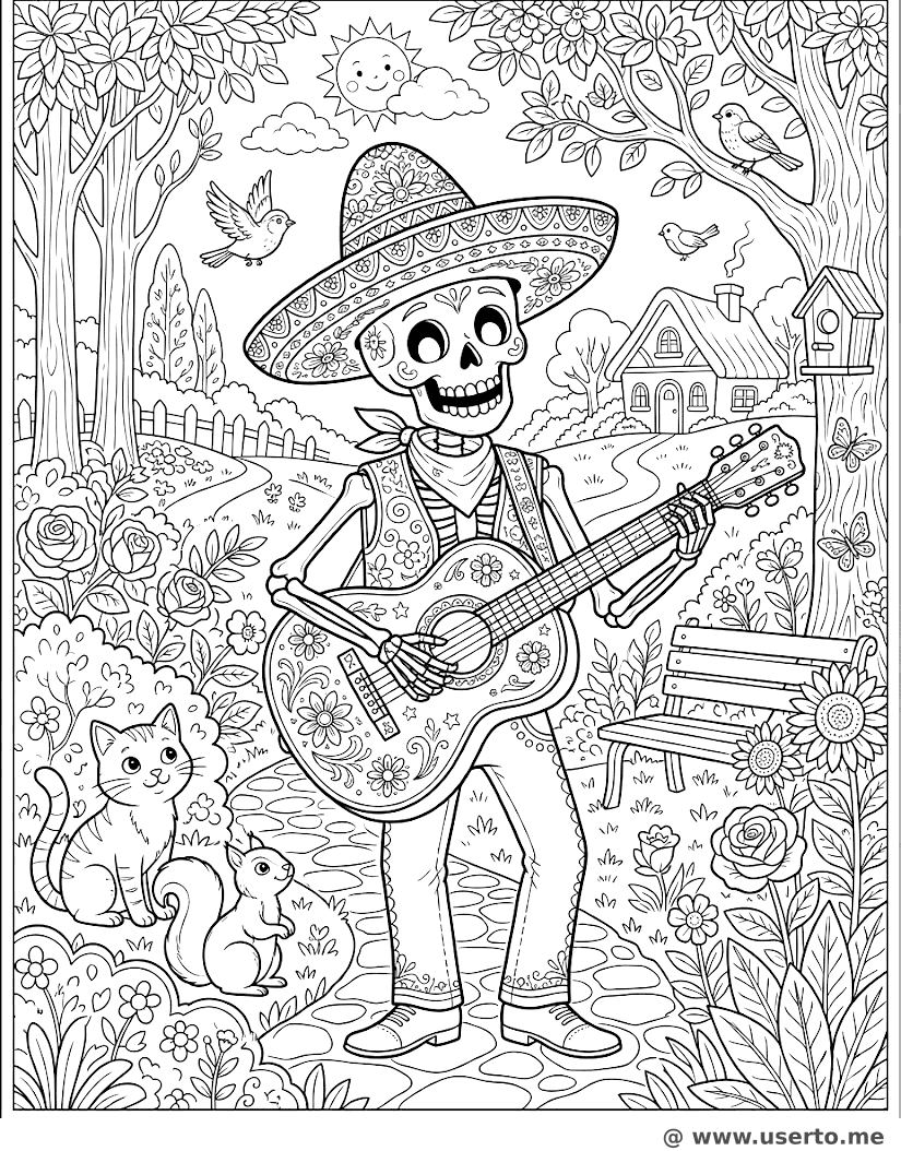 Calavera Guitarrista Musical - AI Coloring Book: To Me Gratis