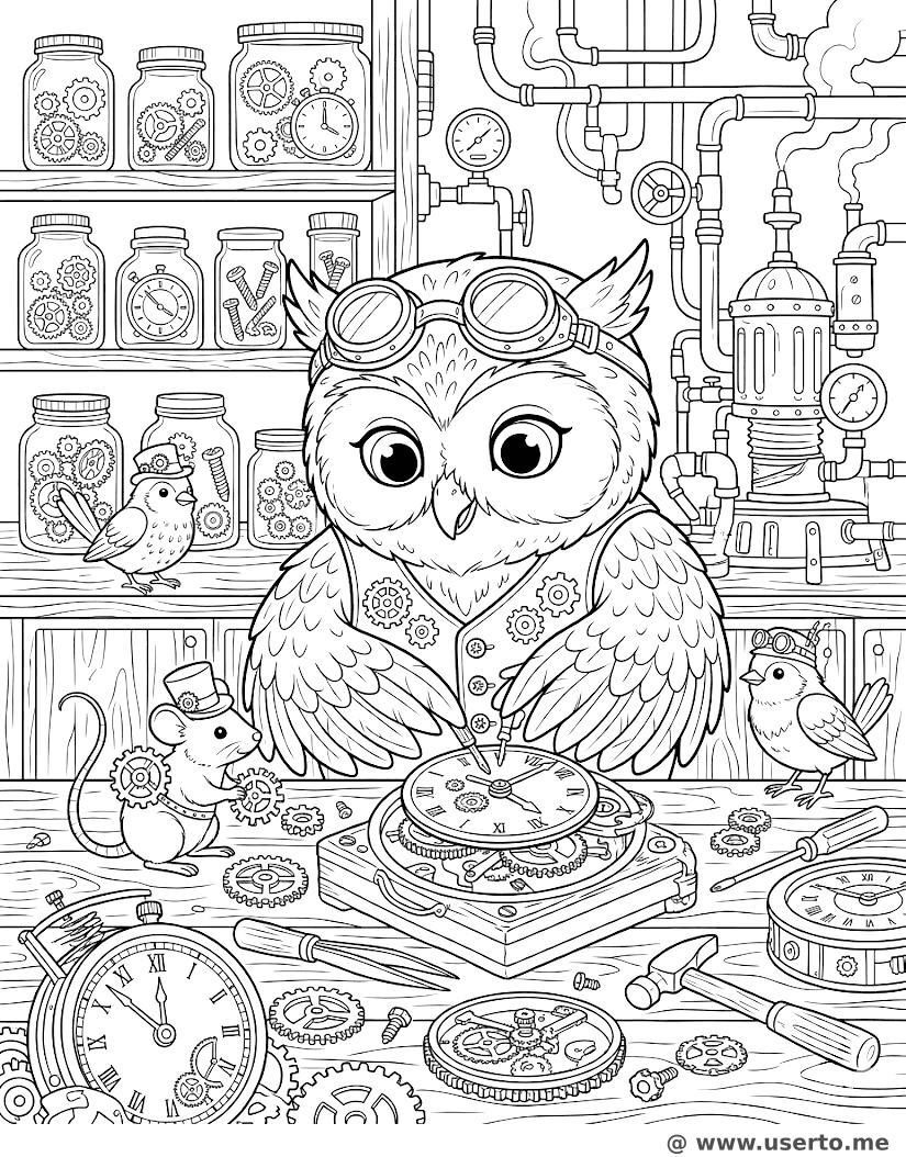 El Búho de Relojería - AI Coloring Book: To Me Gratis