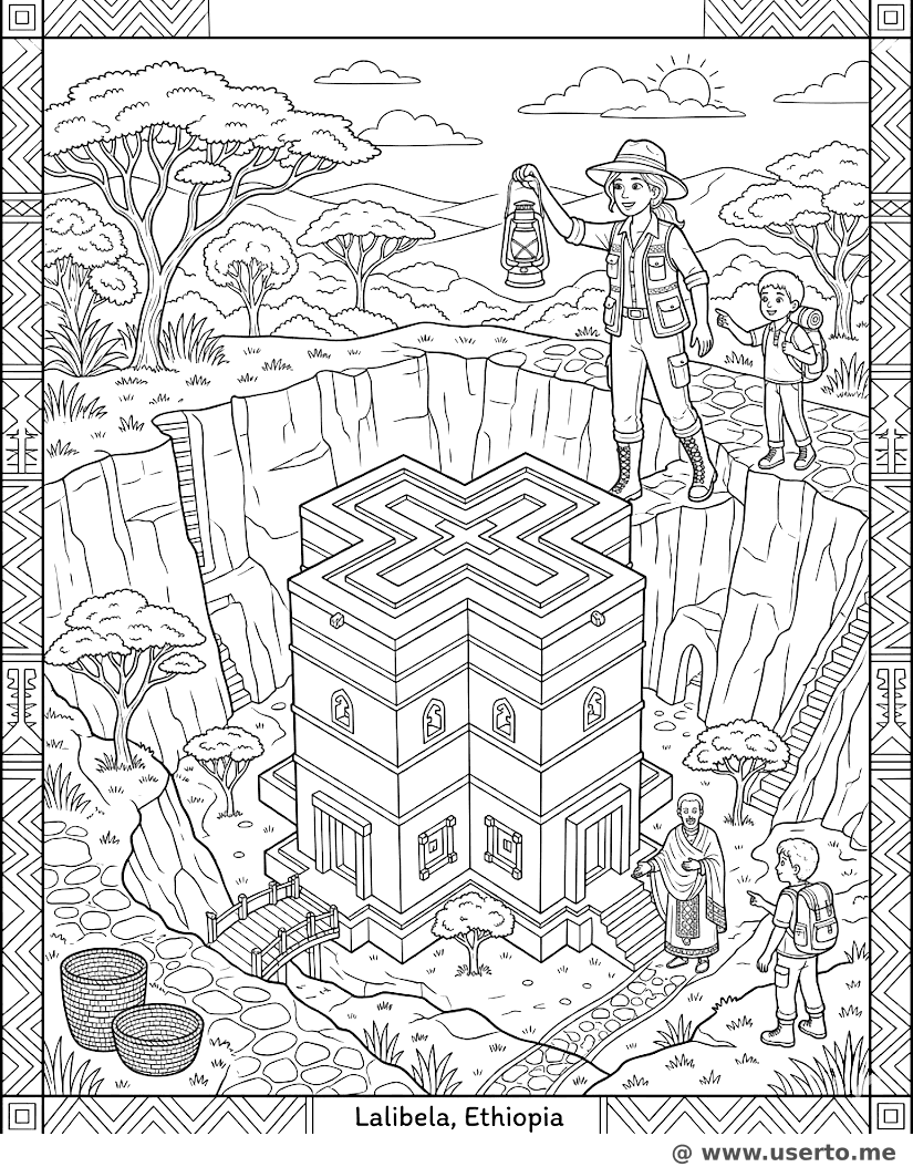 El Descubrimiento del Explorador de Lalibela - AI Coloring Book: To Me Gratis
