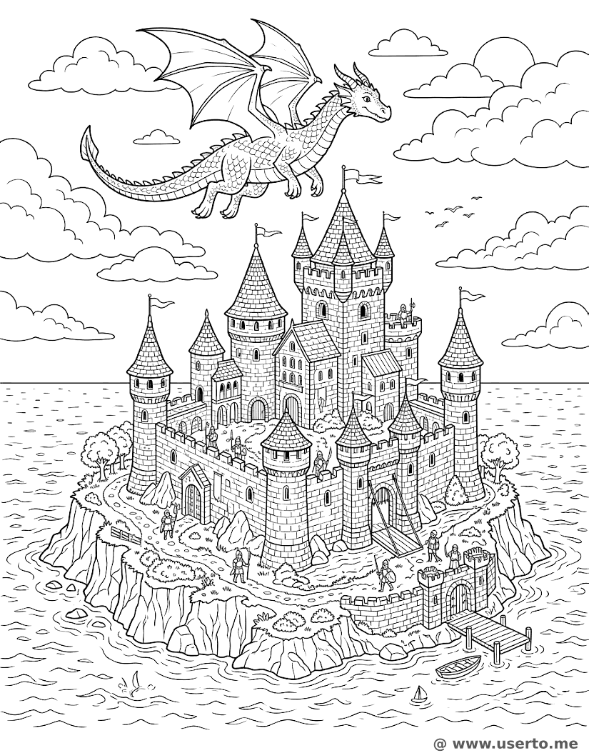 El Dragón de la Abadía de la Isla - AI Coloring Book: To Me Gratis