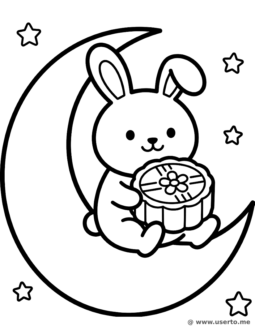 descriptionEl Festín de Pastel de Luna del Conejito Coloring Page Description