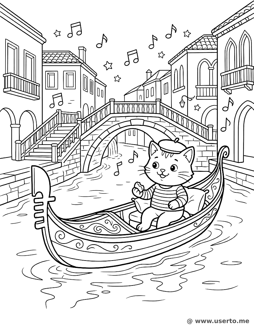 Descubre la página para colorear El Gondolero Cantante en Venecia, diseñada exclusivamente en torno al fascinante tema de Vehículos. Incluyendo góndola, Venecia, gato, agua, viajes, esta hoja imprimible de alta resolución es totalmente gratuita y está optimizada para papel A4 estándar. Con nuestras ilustraciones, los niños pueden disfrutar de mucha diversión creativa mientras desarrollan la motricidad fina, la coordinación ojo-mano y el reconocimiento de colores de forma muy natural. Ideales para padres y maestros que buscan actividades educativas, las páginas fomentan la máxima concentración y permiten a los niños expresar libremente toda su imaginación e increíbles dotes artísticas. Descarga e imprime rápido.