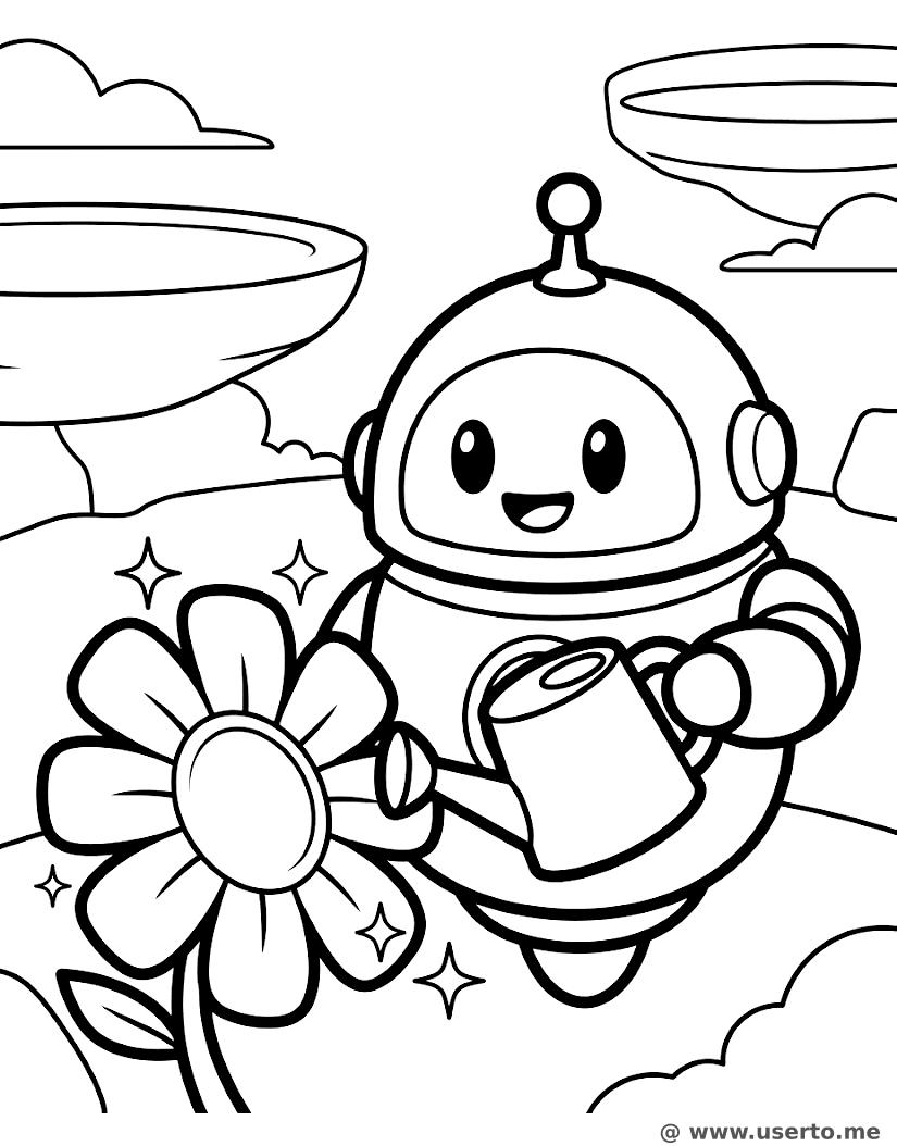 descriptionEl Jardín de Neón de Bumble-Bot Coloring Page Description