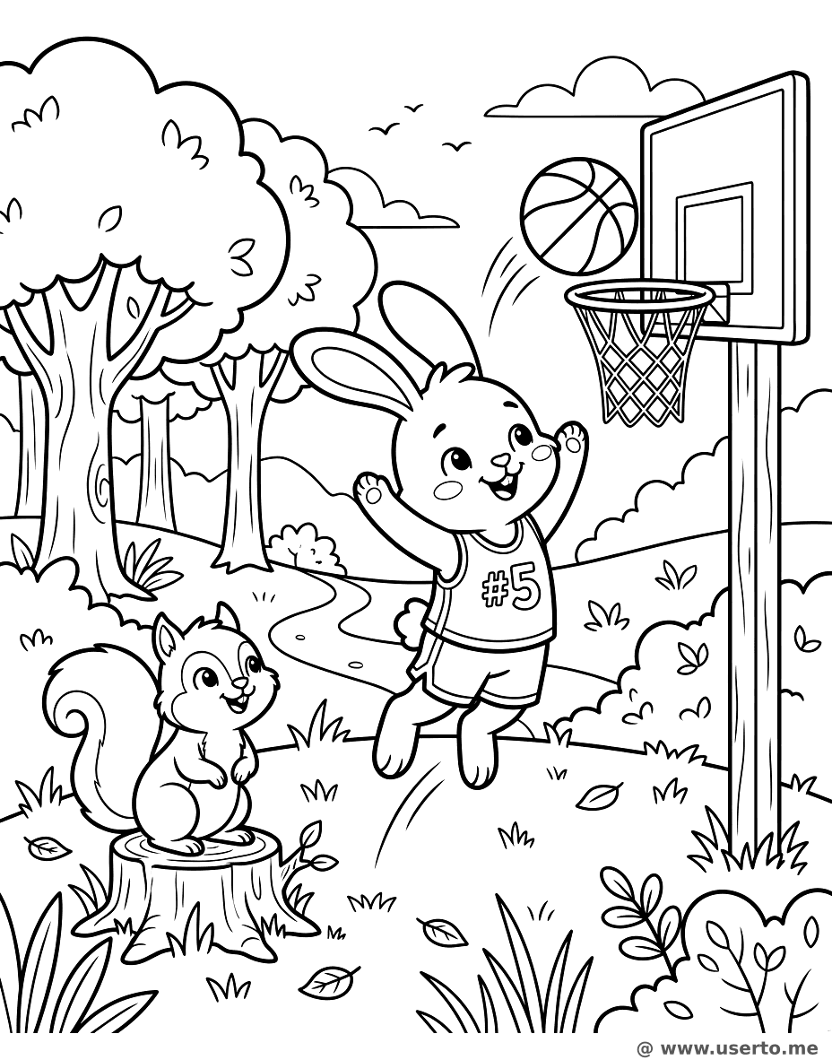 El Partido de Baloncesto de los Amigos del Bosque - AI Coloring Book: To Me Gratis