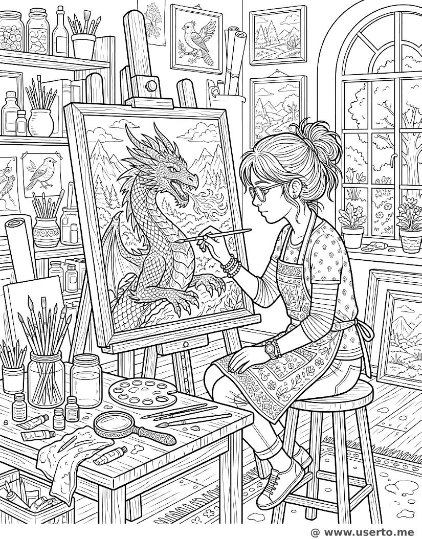 El Restaurador de Dragones - AI Coloring Book: To Me Gratis