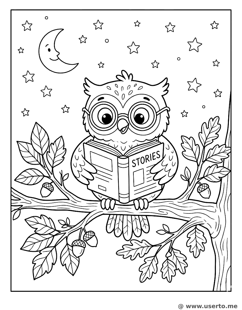 El cuento nocturno del búho sabio - AI Coloring Book: To Me Gratis
