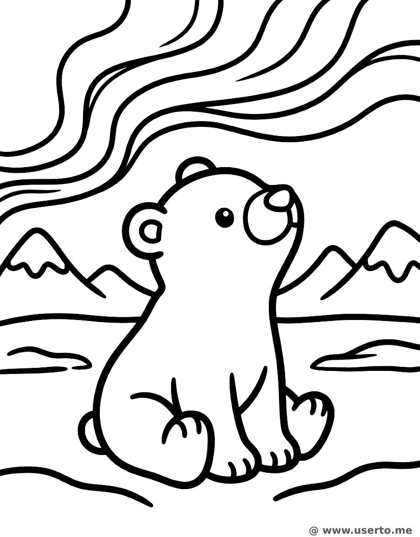 El espectáculo de luces árticas del oso polar - AI Coloring Book: To Me Gratis