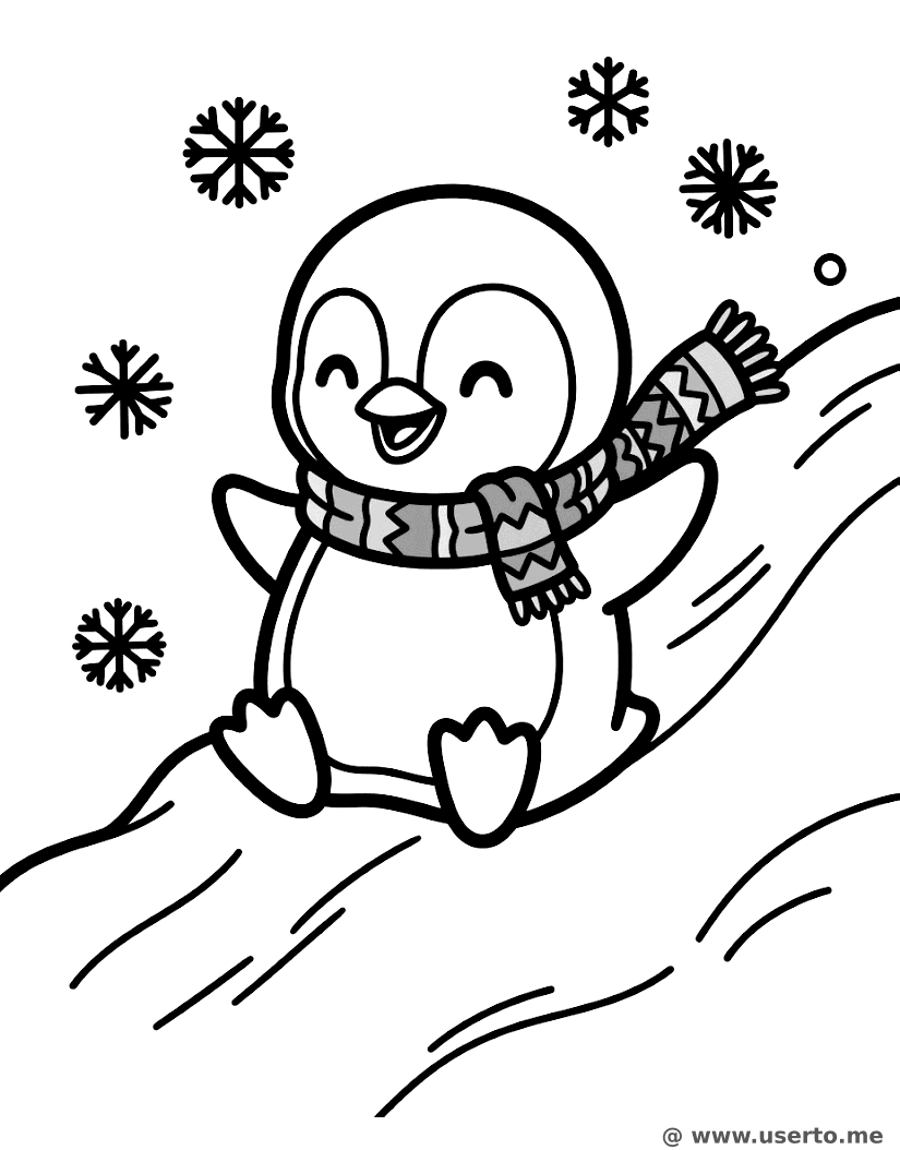 El tobogán de nieve del Pingüino Feliz - AI Coloring Book: To Me Gratis