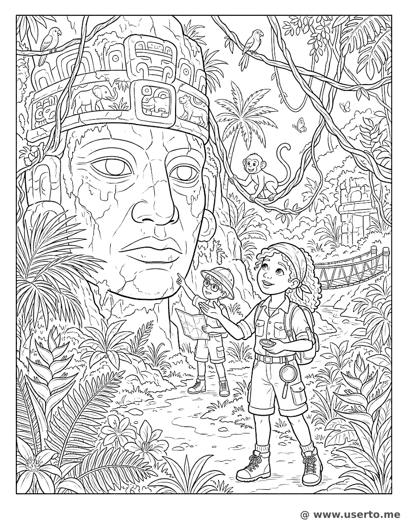 Explorador de la Selva en el Templo Oculto - AI Coloring Book: To Me Gratis