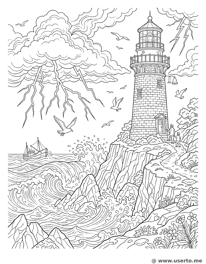 Faro Valiente en la Tormenta - AI Coloring Book: To Me Gratis