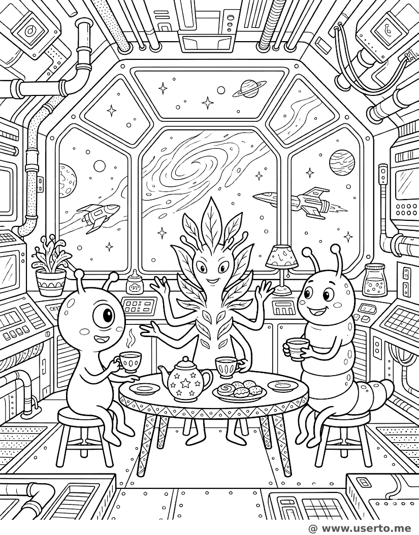 descriptionFiesta de Té Galáctica Coloring Page Description