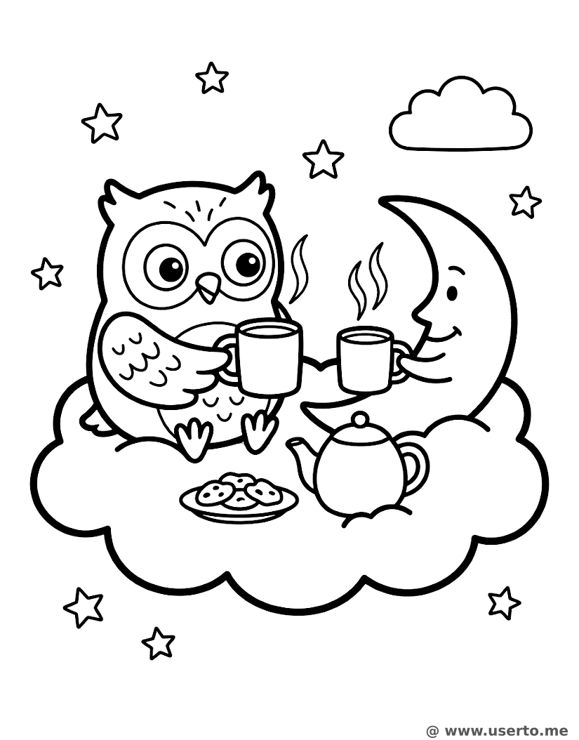 descriptionFiesta de Té a la Luz de la Luna Coloring Page Description