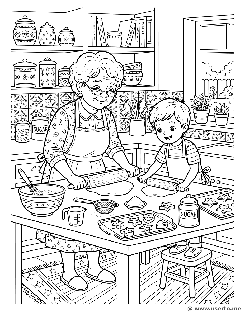Horneando Galletas con Abuela - AI Coloring Book: To Me Gratis