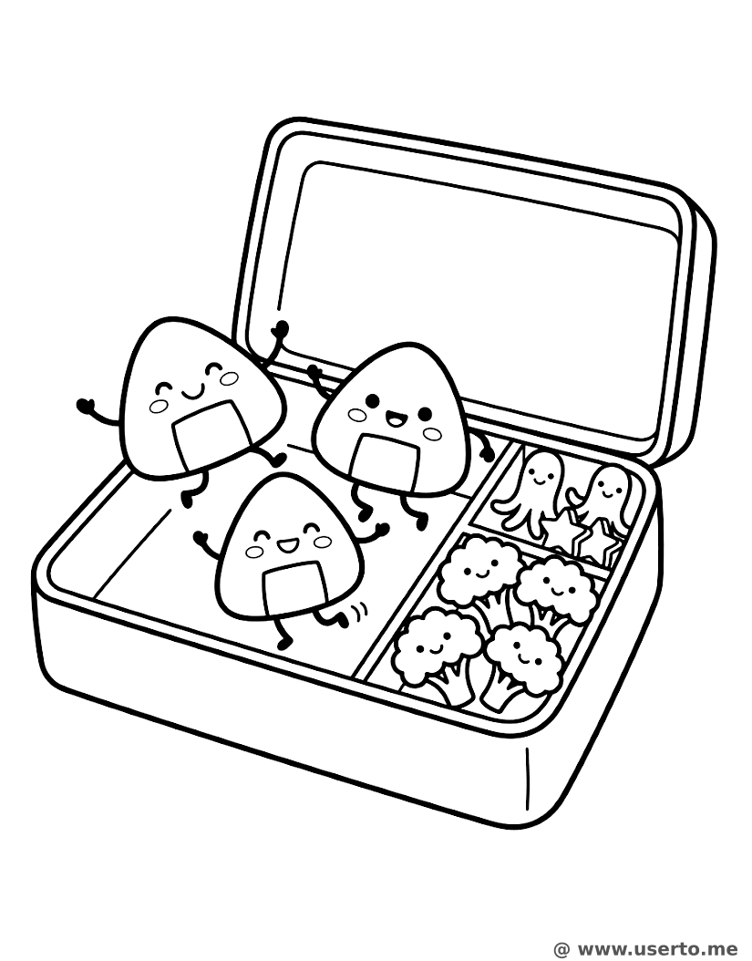 descriptionLa Fiesta de los Onigiris Bailarines Coloring Page Description