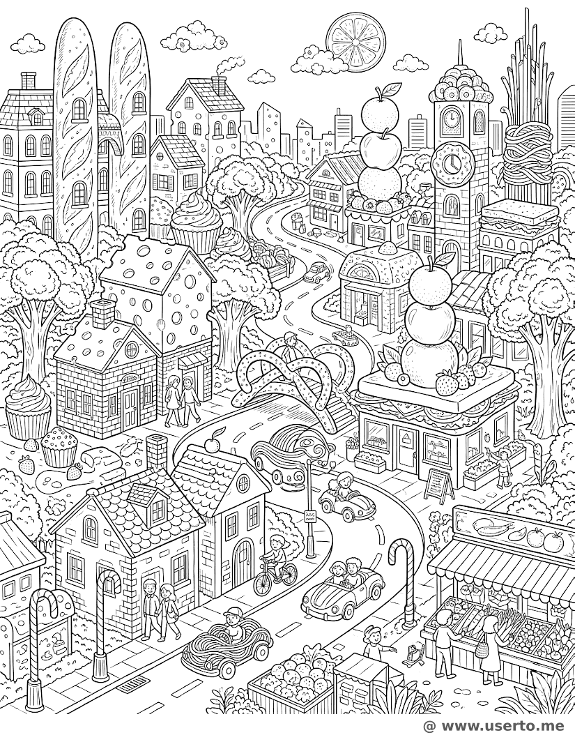La Gran Metrópolis Comestible - AI Coloring Book: To Me Gratis
