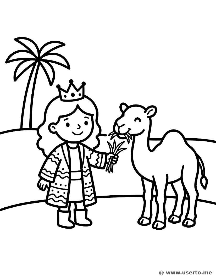 descriptionLa Princesa del Desierto Alimentando a un Camellito Coloring Page Description