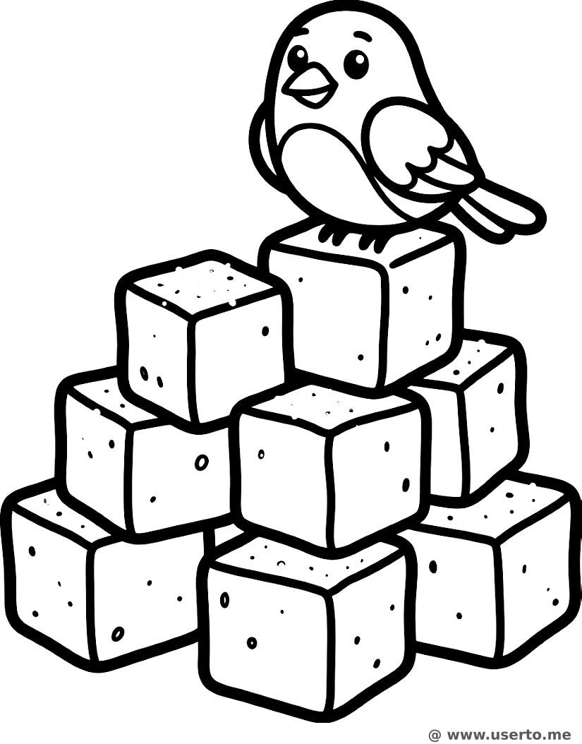 Una pila de cubitos de gelatina azucarada que forman una montaña para que un pajarito descanse.
