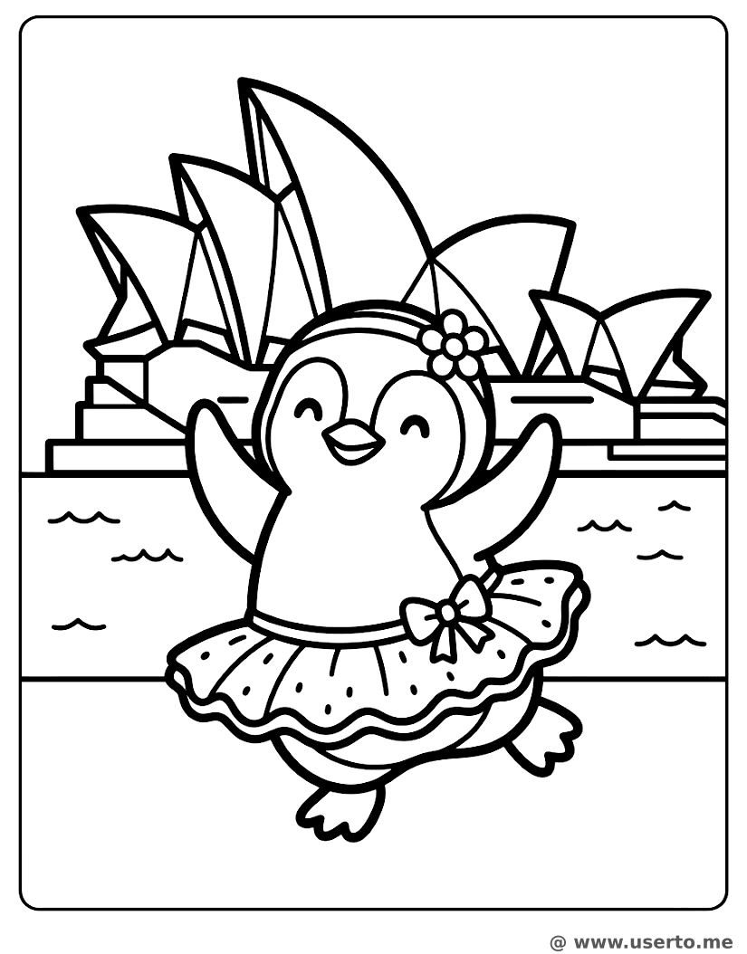 descriptionPingüino bailarín en la Ópera Coloring Page Description