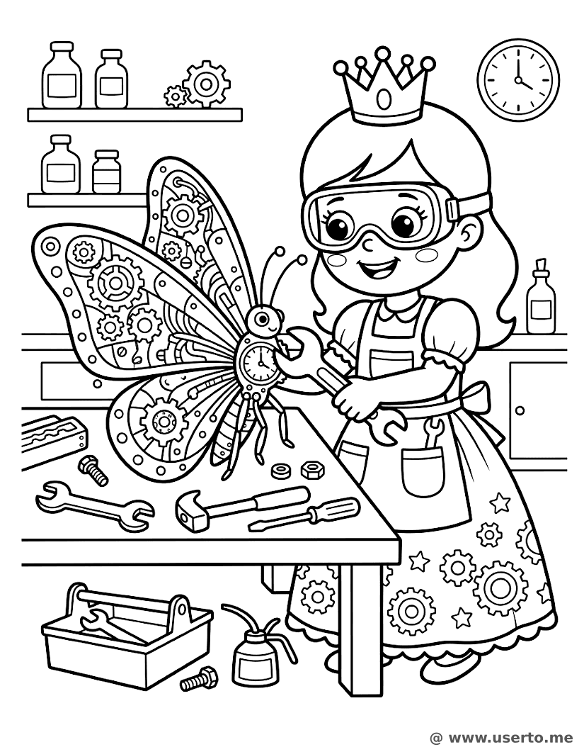 Princesa Inventora de Engranajes - AI Coloring Book: To Me Gratis