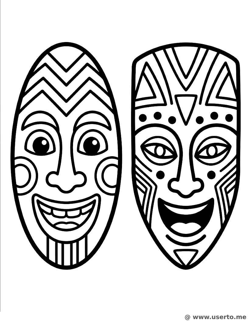 descriptionRitmo de Máscaras Africanas Felices Coloring Page Description
