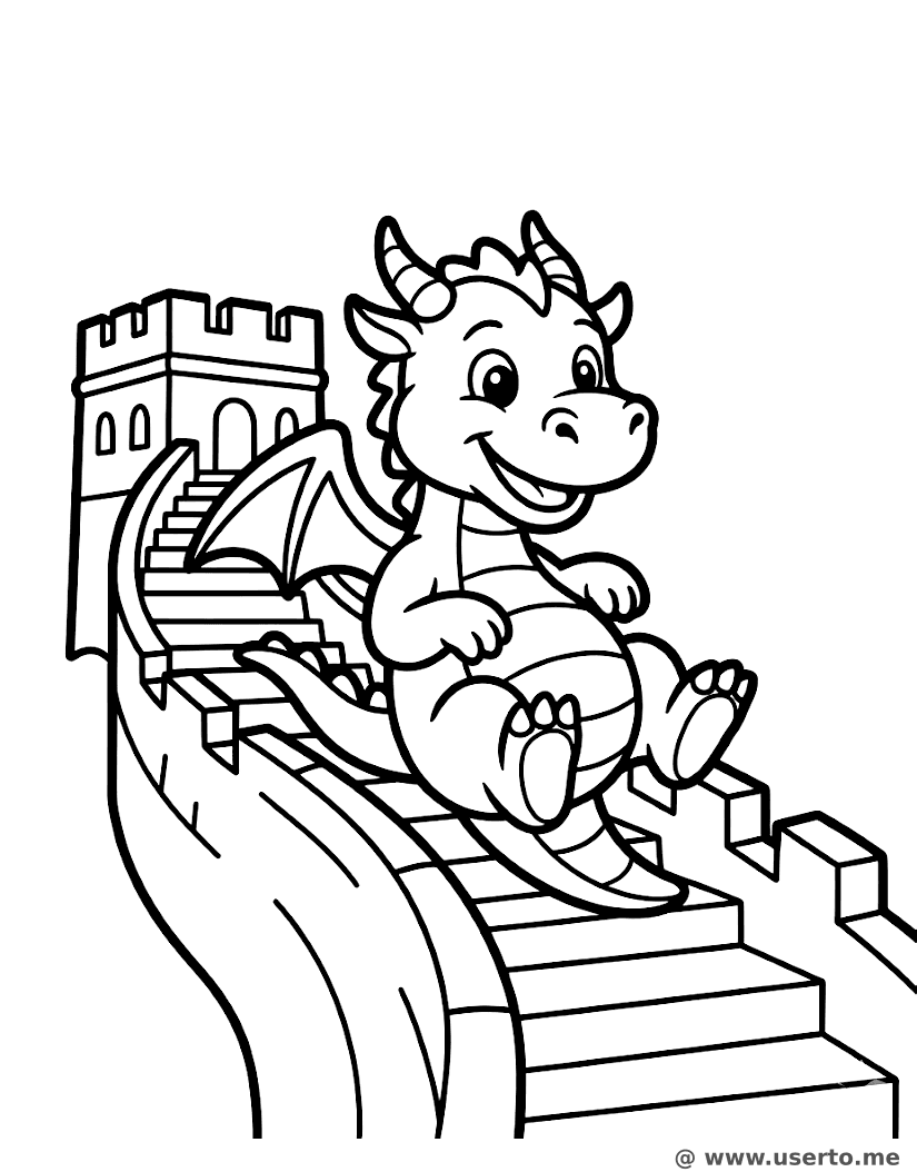 descriptionUn Dragón Amigable en la Gran Muralla Coloring Page Description