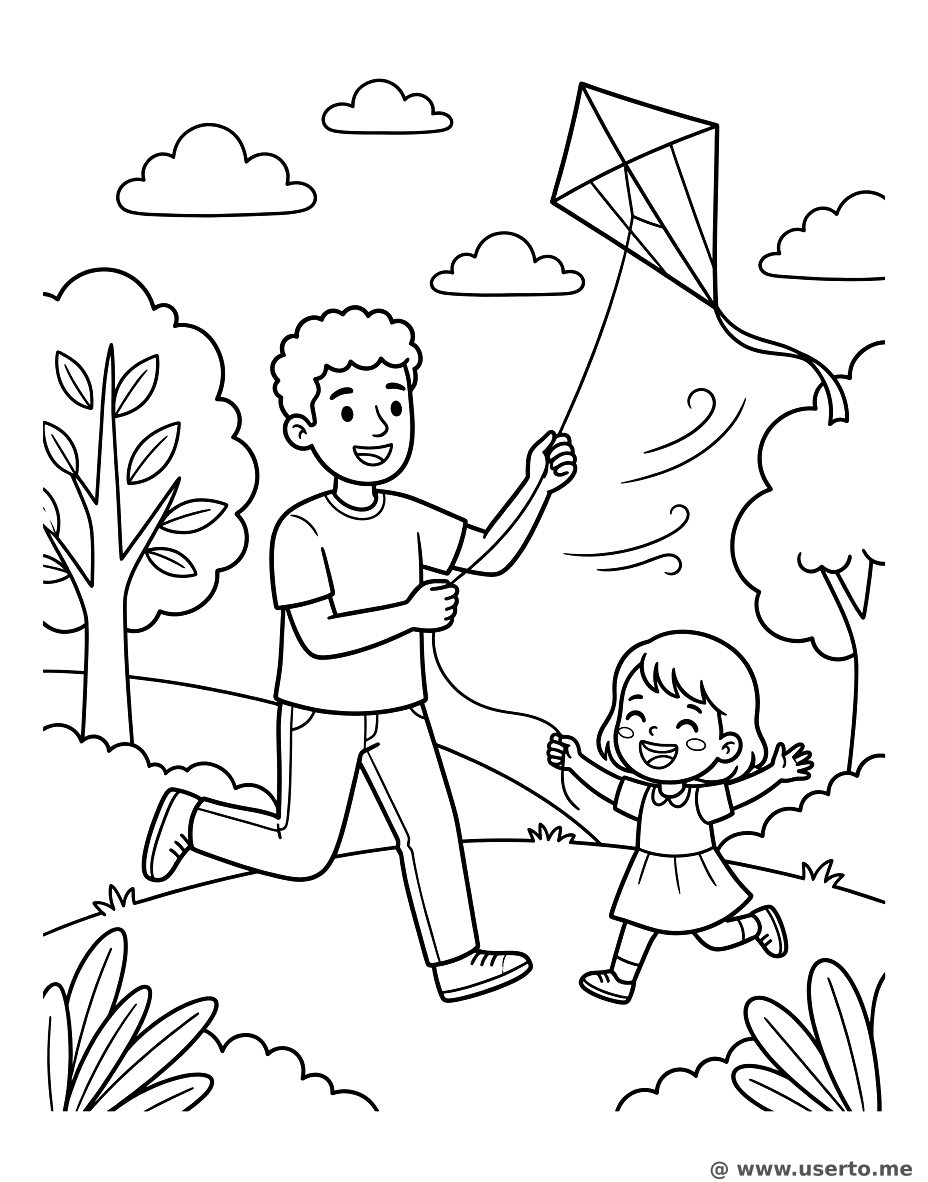 Volando una Cometa con Papá - AI Coloring Book: To Me Gratis
