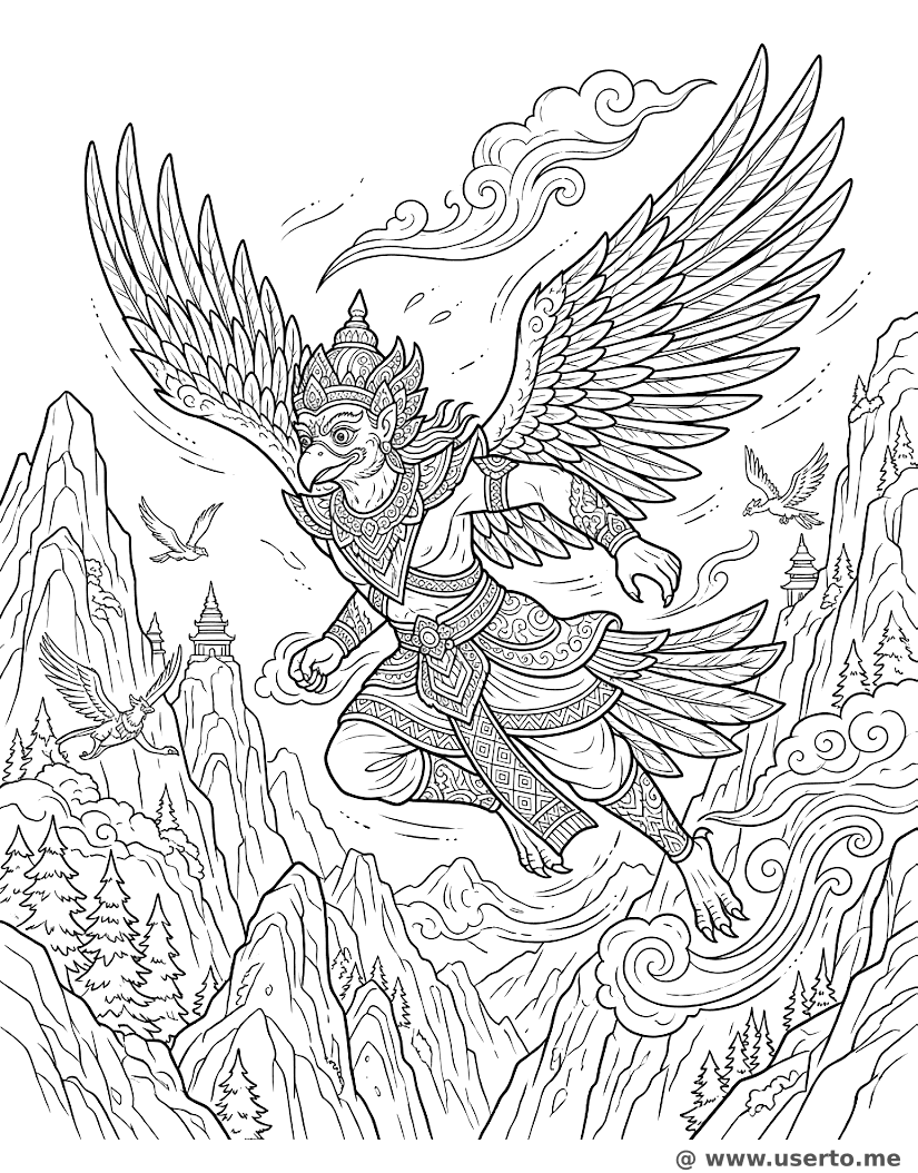 A Corrida de Montanha do Garuda - AI Coloring Book: To Me Grátis