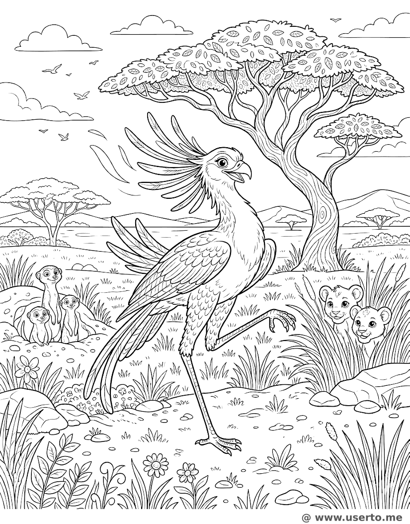 A Dança do Deserto do Secretário - AI Coloring Book: To Me Grátis