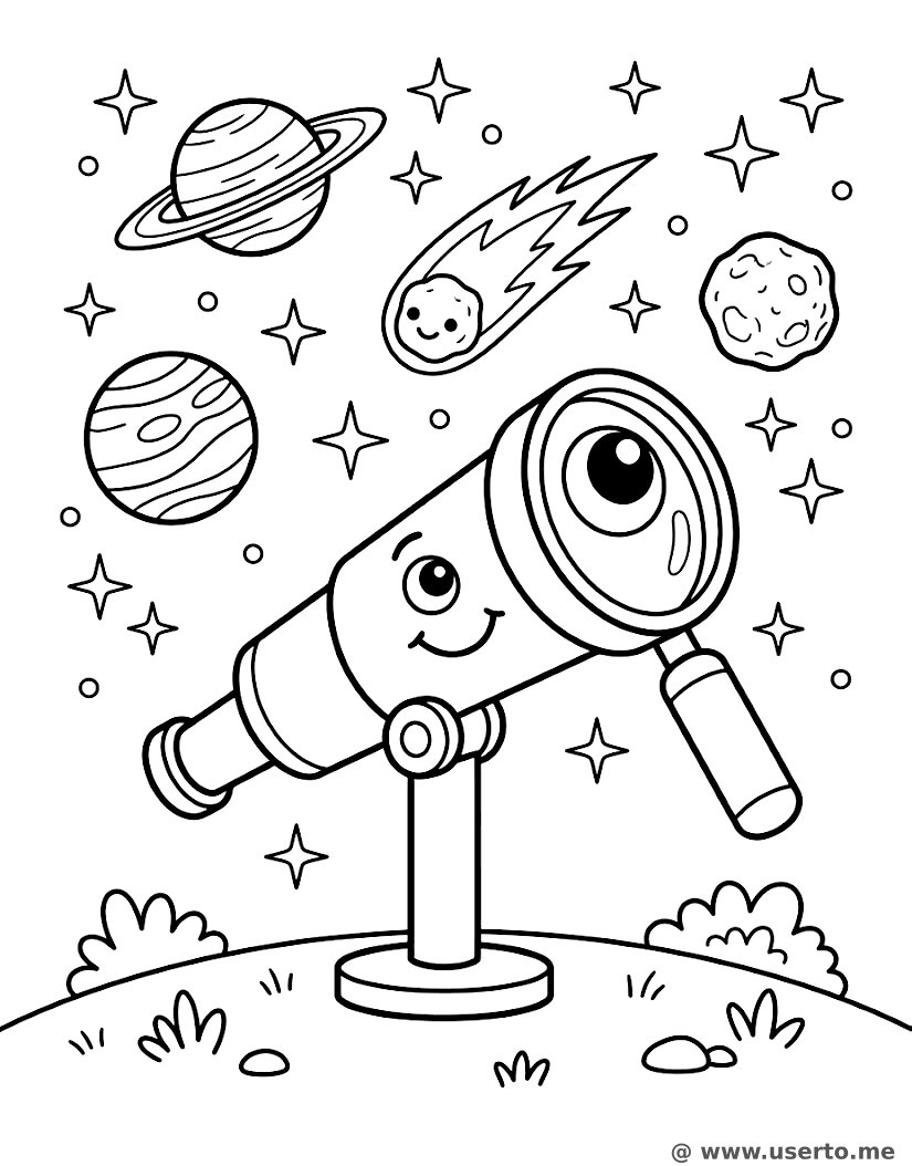 A Descoberta Espacial do Telescópio Mágico - AI Coloring Book: To Me Grátis